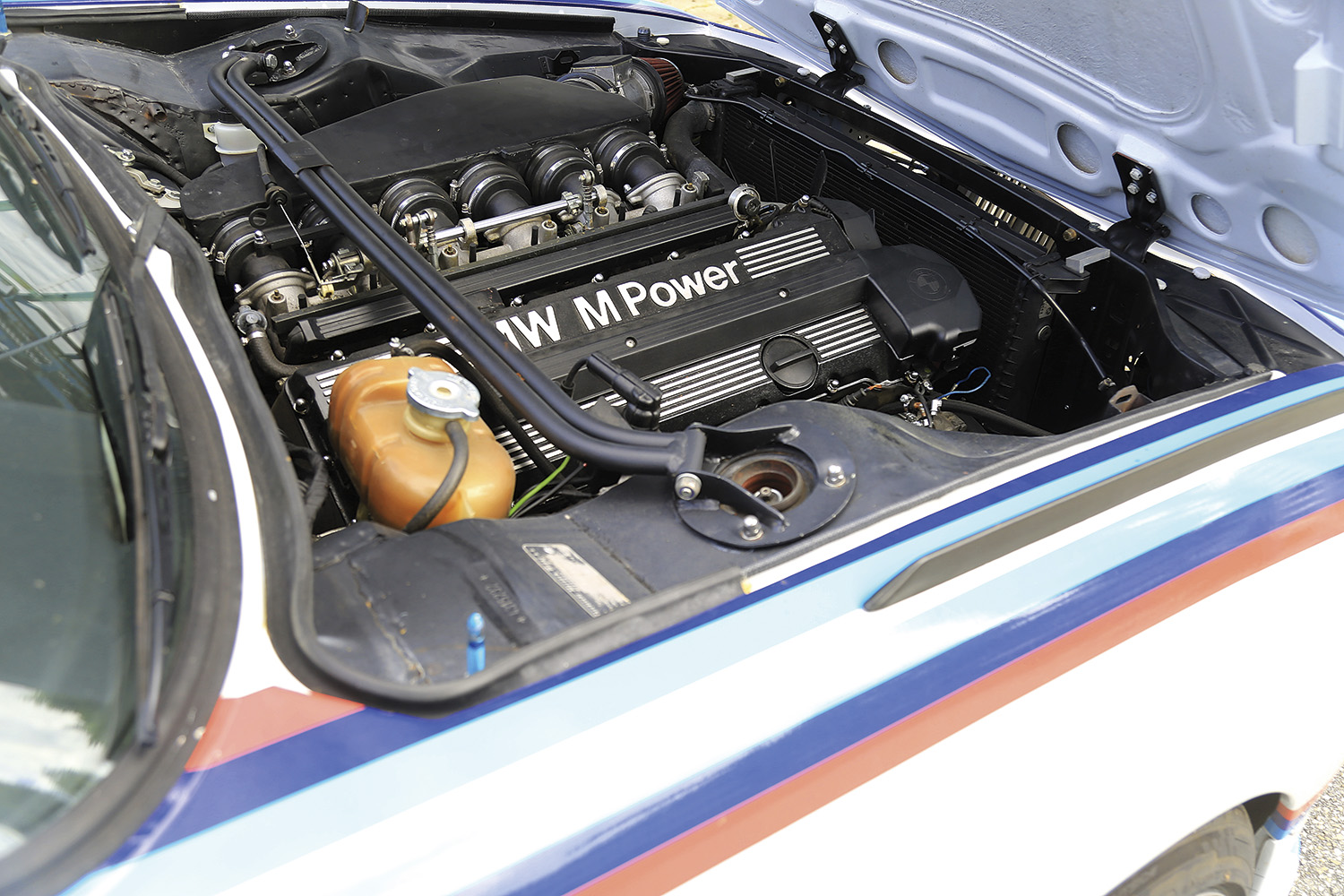 Keine Umbauten verlangte der installierte Motor. Das 3,5 Liter große Aggregat stammt ursprünglich aus einem E34 M5 und kam im Zuge des Gruppe-5-Umbaus an Bord, der um das Jahr 2010 erfolgte. Der Wagen sollte seinerzeit bei einem Bergrennen starten, was auch erklärt, warum auf eine Straßenzulassung kein großer Wert gelegt wurde. Franz berichtet weiter: „Der Motor wurde so weit wie möglich nach hinten versetzt, um die Gewichtsverteilung im Auto zu verbessern. Dafür hat man sogar den kompletten Heizungsschacht weggeschnitten. Der Wagen hat also keine Heizung.“