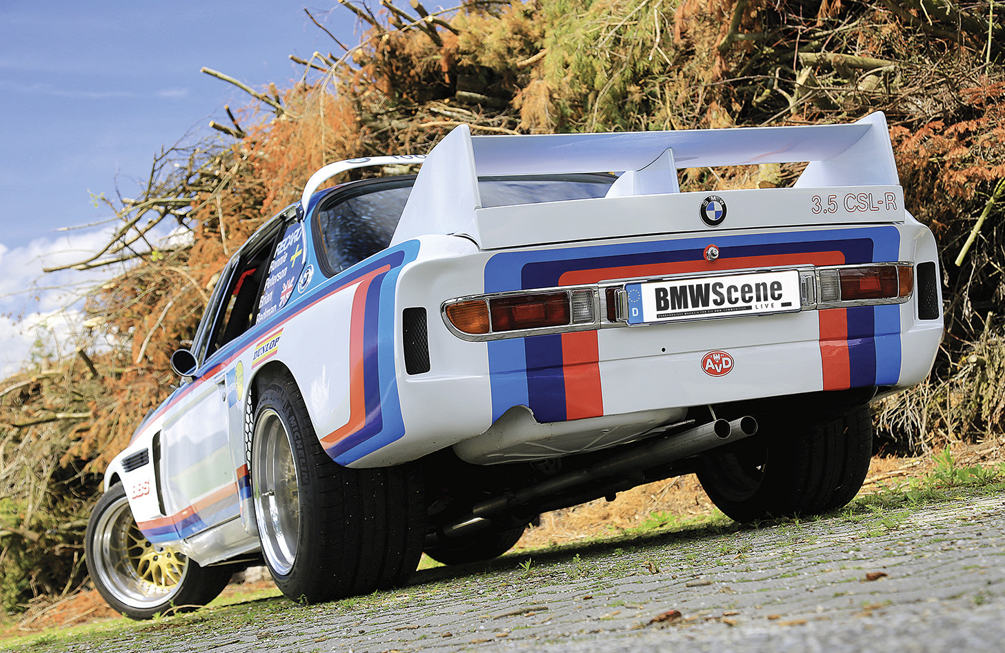 Im ersten Moment ungewöhnlich, auf den zweiten Blick aber logisch ist die Positionierung des Tankeinfüllstutzens: Er wurde durch den Kofferraumdeckel nach außen verlegt, was wesentlich einfacher war, als ihn seitlich durch die Verbreiterung zu führen. Weiterhin ungewöhnlich ist die Hecktypenbezeichnung „3.5 CSL-R“ in der Kategorie „Freestyle“ einzuordnen.