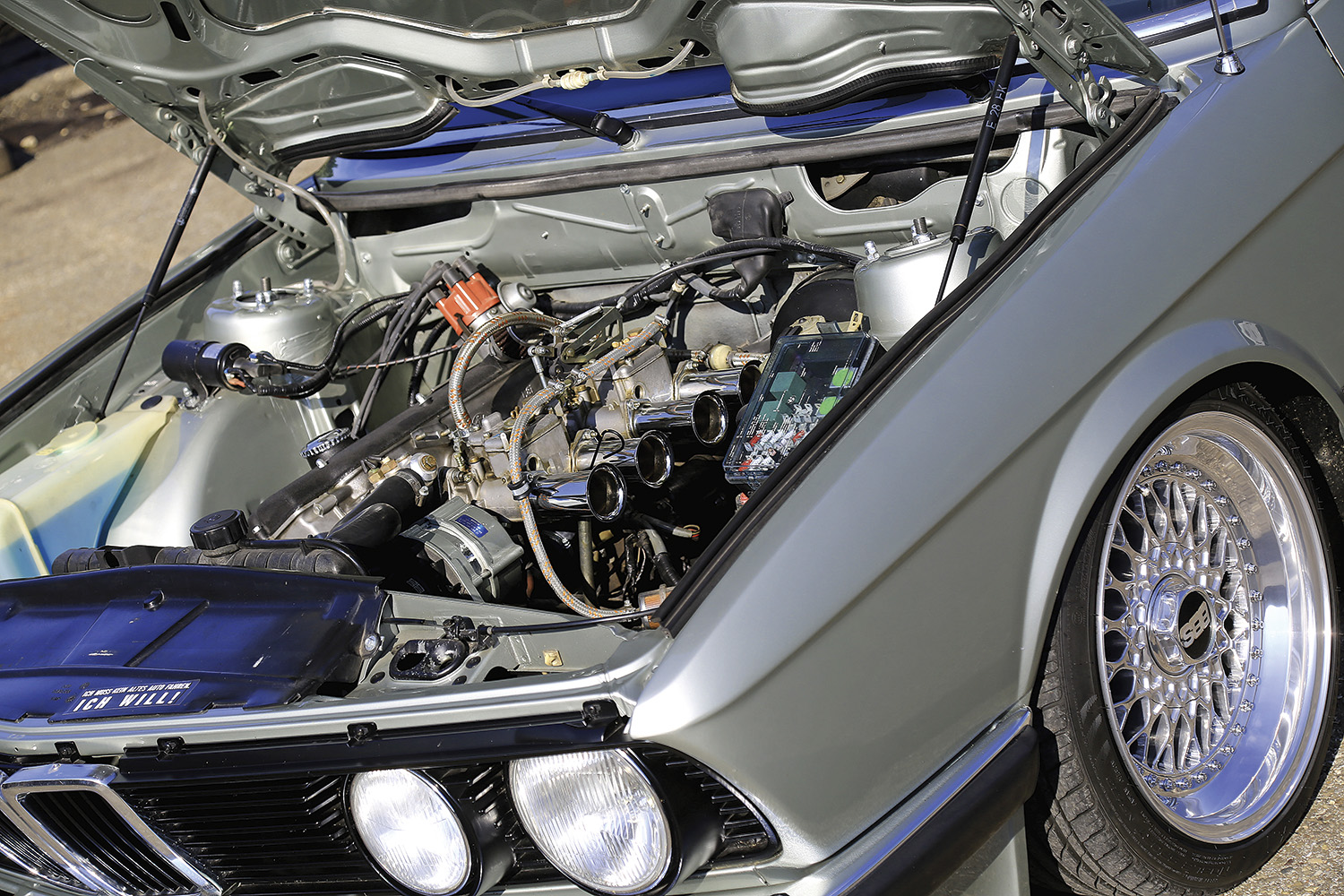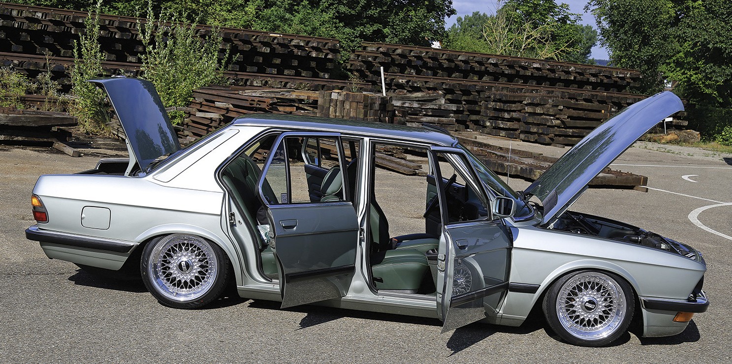 Hingucker: Unter der Haube des kantigen E28 erwarten die wenigsten einen rennsportmäßigen Vierzylinder mit offenen Ansaugtrichtern.
