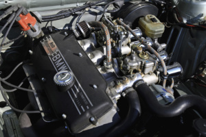 BMW-M10B18-8v-Reihenvierzylinder, Neuaufbau Kolb Motorsport, 170 PS und 230 Nm, Verdichtung 11 : 1, Schrick-316°-Nockenwelle, bearbeitete Brennräume (hemisphärisch), Schmiedekolben, Weber-Doppelvergaseranlage, Fächerkrümmer, Edelstahl-Auspuffanlage