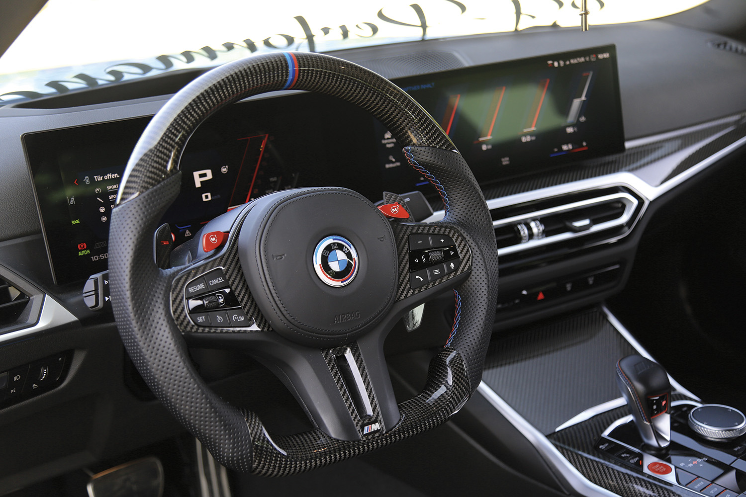 Großzügige Carbon-Abdeckungen veredeln die Rückseiten der Sitze.